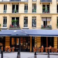 Amelie sits down at a cafe